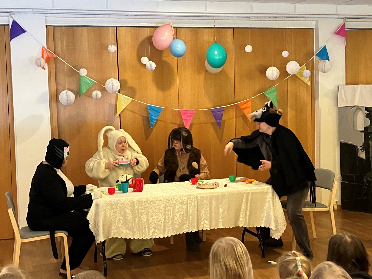 Lapsed elasid väga emotsionaalselt etendusele kaasa – püüti sünnipäevapeolisi kassi, jänest ja koera hea nõuga abistada ning varest pahanduste pärast korrale kutsuda.